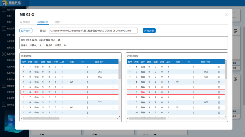 RIDP平臺上(shang)的(de)設備(bei)(bei)(bei)運維管理系(xi)(xi)統(tong)(tong),可(ke)以對(dui)工位、報警(jing)次數、停線時(shi)長等(deng)各維度信息進(jin)行(xing)統(tong)(tong)計,方便跟蹤重(zhong)點故障,實現報警(jing)數據可(ke)視化(hua)管理,保證(zheng)數據的(de)可(ke)追溯。用戶(hu)在系(xi)(xi)統(tong)(tong)上(shang)可(ke)以對(dui)機(ji)器人(ren)程序(xu)進(jin)行(xing)一鍵備(bei)(bei)(bei)份(fen),快捷查閱系(xi)(xi)統(tong)(tong)預置的(de)故障幫助文(wen)檔、各類(lei)設備(bei)(bei)(bei)信息、程序(xu)差分對(dui)照(zhao)表等(deng)數據,系(xi)(xi)統(tong)(tong)記錄了(le)各類(lei)伺(si)服參數,方便用戶(hu)對(dui)參數的(de)歷(li)史修改進(jin)行(xing)前后比對(dui),減(jian)少不(bu)同人(ren)員上(shang)線工作的(de)溝通成本,和(he)降低新增設備(bei)(bei)(bei)的(de)時(shi)間,做(zuo)到系(xi)(xi)統(tong)(tong)管理,提高效率。