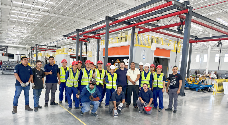 據該項目技術人員表示,在項目實施的過程中,不僅面對產線前期在國內建造調試、后期在國外安裝使用的難題,同時要克服在客戶現地遇到的高溫作業環境、不同的飲食習慣、文化差異等困難。“我們在墨西哥溫度高達45°C的工廠里經常作業長達12小時,全天工衣都是汗水浸透的狀態,同時因為飲食習慣的不同,我們也沒法吃得好,那段日子確實很艱難。”“但一切都是值得的,我們用實際行動向國際展示了中國制造的力量,我們能戰勝一切困難,我們堅不可摧!”