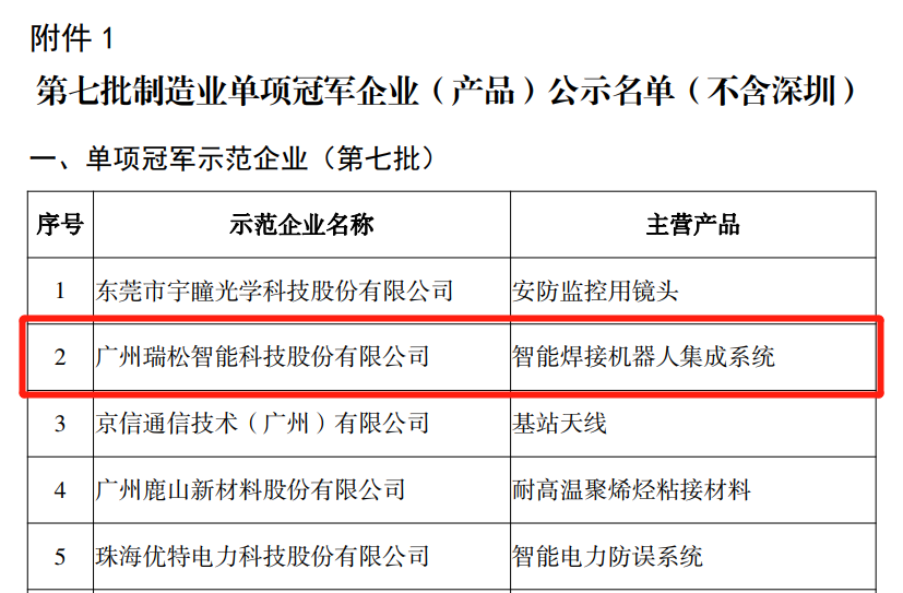 広州瑞松知能科學技術株式會社はこのほど、國家工業?情報化部、中國工業連合會が展開する2022年製造業単項優勝企業(製品)育成選考において、第7回「國家級製造業単項優勝モデル企業」リストに選ばれた。