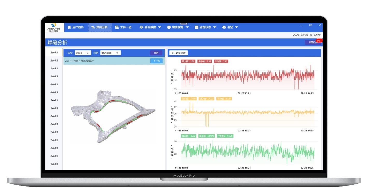 RIDP平臺上的(de)焊(han)(han)接(jie)質量(liang)管(guan)理(li)系統(tong),利(li)用服務器(qi)對機(ji)(ji)器(qi)人、機(ji)(ji)器(qi)人控(kong)制器(qi)和產線PLC的(de)信息進行收集(ji),并建立數(shu)據(ju)(ju)庫,可(ke)視(shi)(shi)化(hua)的(de)呈現給用戶,用戶可(ke)以根據(ju)(ju)這些信息,和預(yu)先訓練好的(de)AI模型,進行焊(han)(han)接(jie)參(can)數(shu)制定、焊(han)(han)接(jie)參(can)數(shu)下發、焊(han)(han)接(jie)執(zhi)行、質量(liang)預(yu)測等(deng)焊(han)(han)接(jie)工作,對焊(han)(han)接(jie)良品(pin)的(de)上下限電阻閾值(zhi)進行科學智能的(de)設(she)置,以及實時預(yu)警。該(gai)系統(tong)可(ke)對弧焊(han)(han)、點(dian)焊(han)(han)等(deng)多種焊(han)(han)接(jie)工藝進行數(shu)據(ju)(ju)監(jian)視(shi)(shi)和數(shu)據(ju)(ju)追溯,便于分析利(li)用,有(you)效降低生產成本,提升焊(han)(han)接(jie)良品(pin)率。