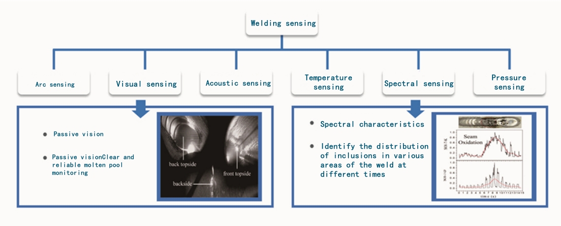 Self-sensing - use arc sensing, visual sensing and spectral sensing technology to extract various types of parameter information in the welding process.