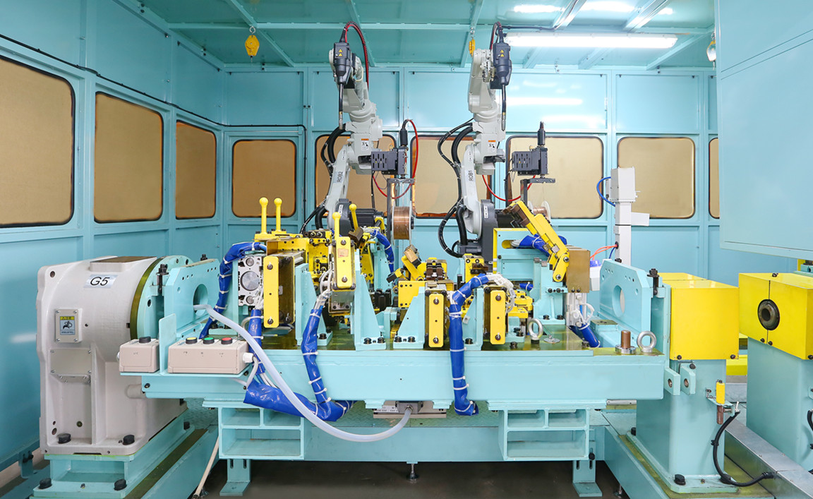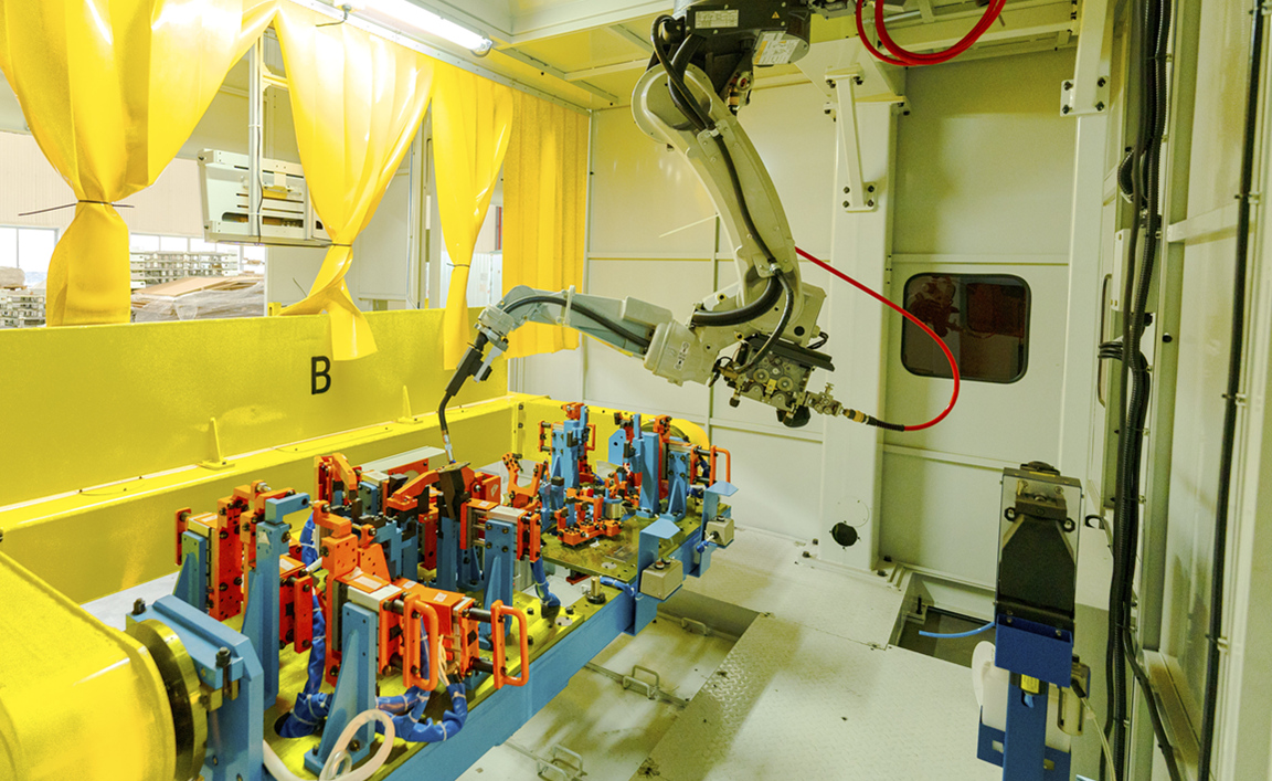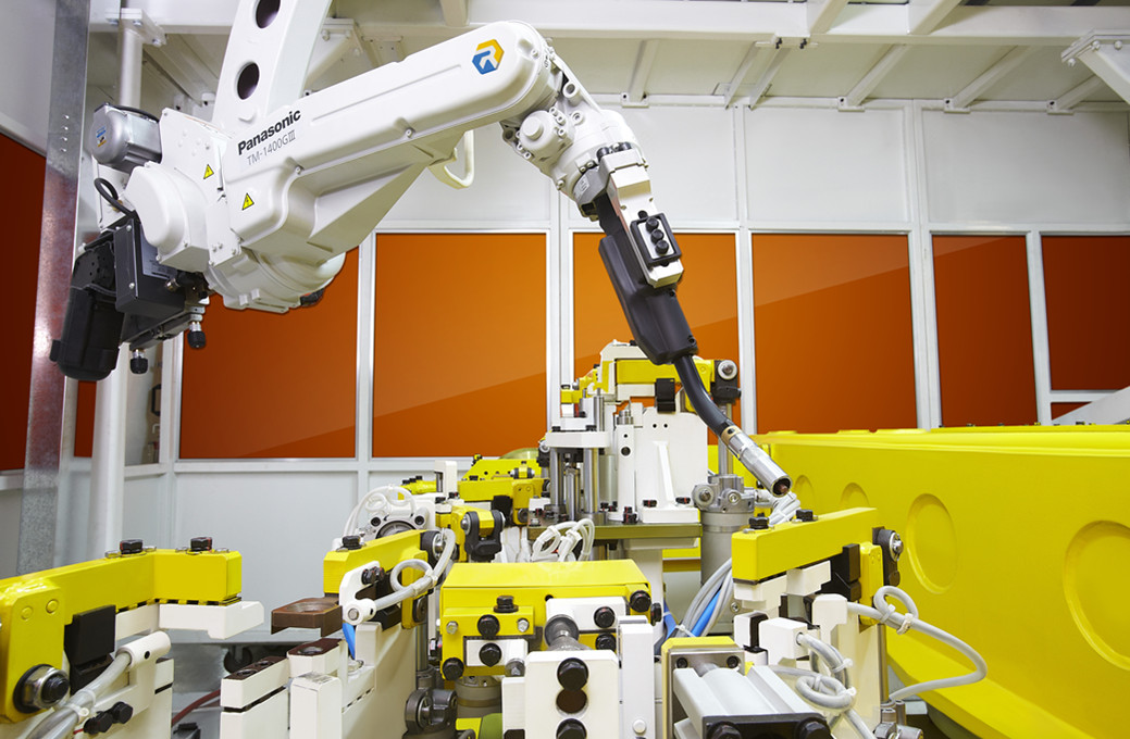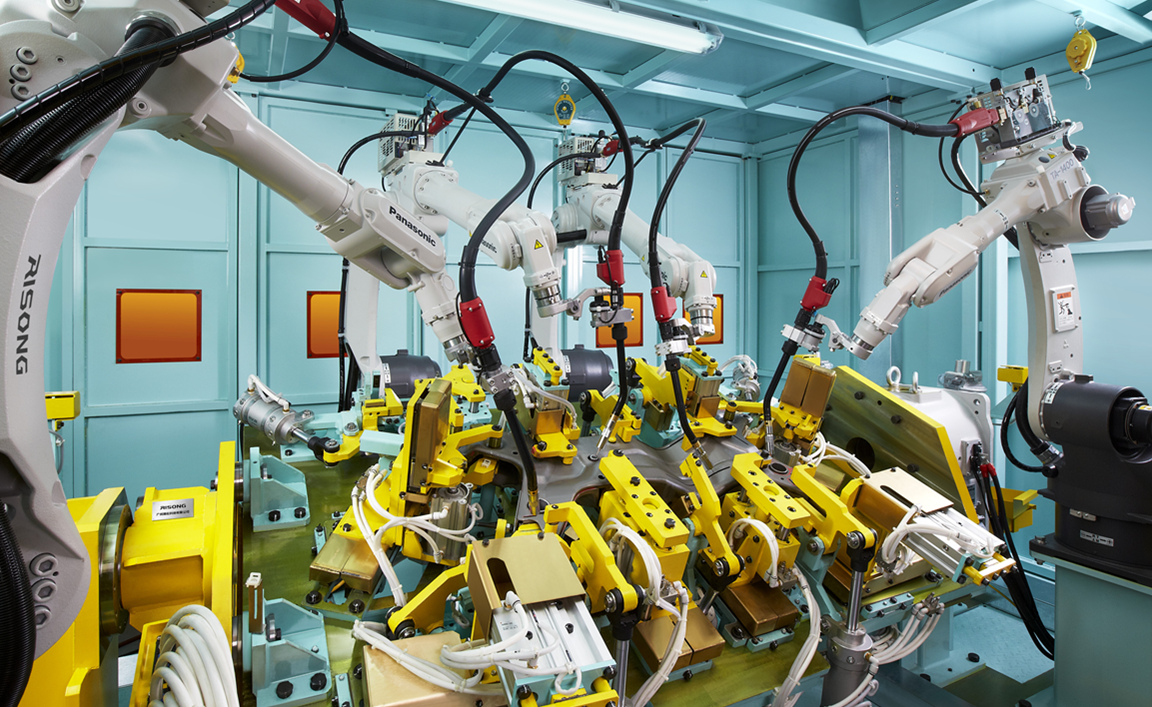 ????瑞松科技在摩托車、電動車生產線領域的應用,是將機器人焊接系統、焊接夾具、檢具集成于一身,對車架、油箱、消音器進行總體焊接,運用全自動拋光打磨技術、 全自動機器人縫焊、自動火焰釬焊、低飛濺焊接技術,實現百分百全位置、全角度焊接,變形少,不需要進行人工校正,從而顯著降低成本;焊接過程中能夠做到焊 接技術參數信息的采集、反饋、優化。公司為某客戶設計建造的生產線運用了公司設計的三軸大回轉機構,配合機器人在摩托車、電動車車架焊接中應用,提升了焊接過程的穩定性、精度和焊接質量;此外,公司將重熔工藝運用于鋁合金等高強度、輕量化材料焊接中,在行業內具有領先性。