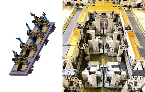 (1)與多軸伺服白車身定位技術配合使用時,工件實現了“高度 0 搬送”(車身在作業狀態和搬運狀態高度一致)模式,提高穩定性及輸送效率;